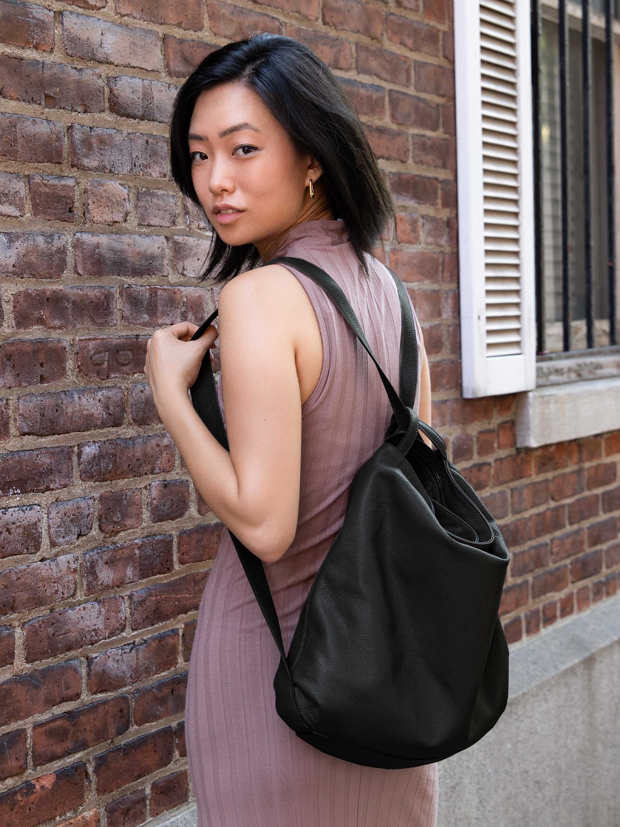 Two versatile bags in one, The Laura exemplifies how true Italian craftsmanship never ignores functionality. The relaxed, roomy shape—featuring two interior pockets—fits your laptop, wallet, cosmetic bag, water bottle, and more little essentials. Simply slide the straps to transform it from shoulder bag to backpack and back again. It’s my go-to travel bag.