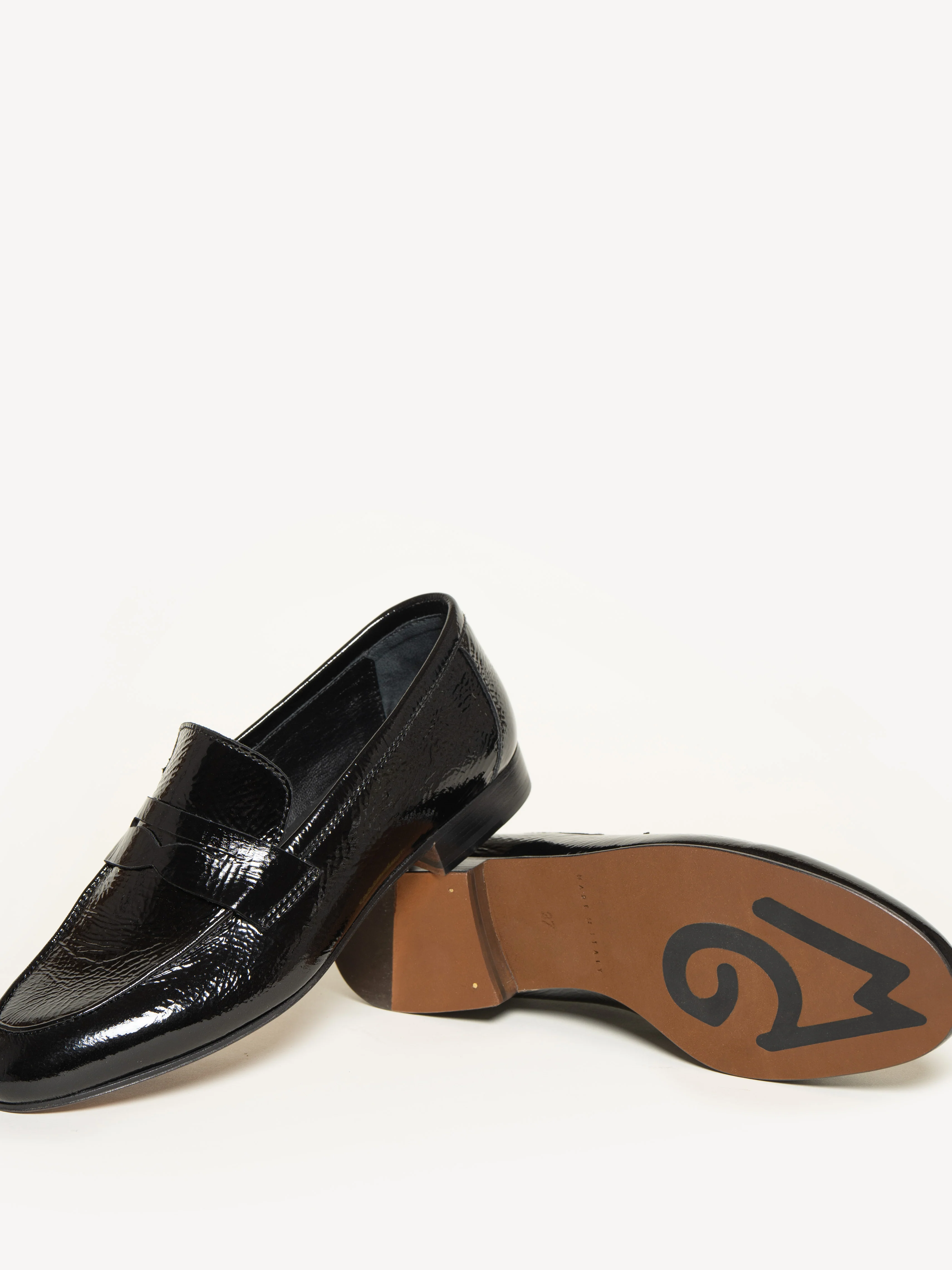 Updated in hand-sewn naplak leather—a softer and more pliant alternative to traditional patent—The Sacca Donna is our classic Italian loafer. Designed for utmost flexibility, lightness, and comfort, it also features rubber inserts on the sole and a stacked leather heel for added traction. It’s the ideal year-round shoe.